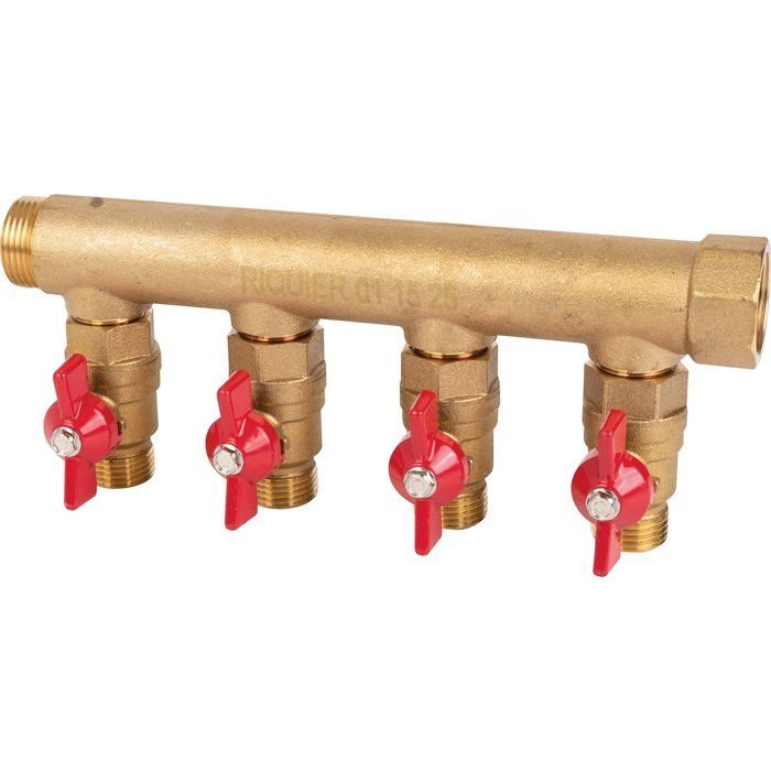 Collecteur 4 sorties - MF 3/4" - Avec vanne M 1/2" - Riquier |