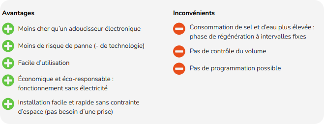 5. Les avantages et les inconvénients d’un adoucisseur mécanique :