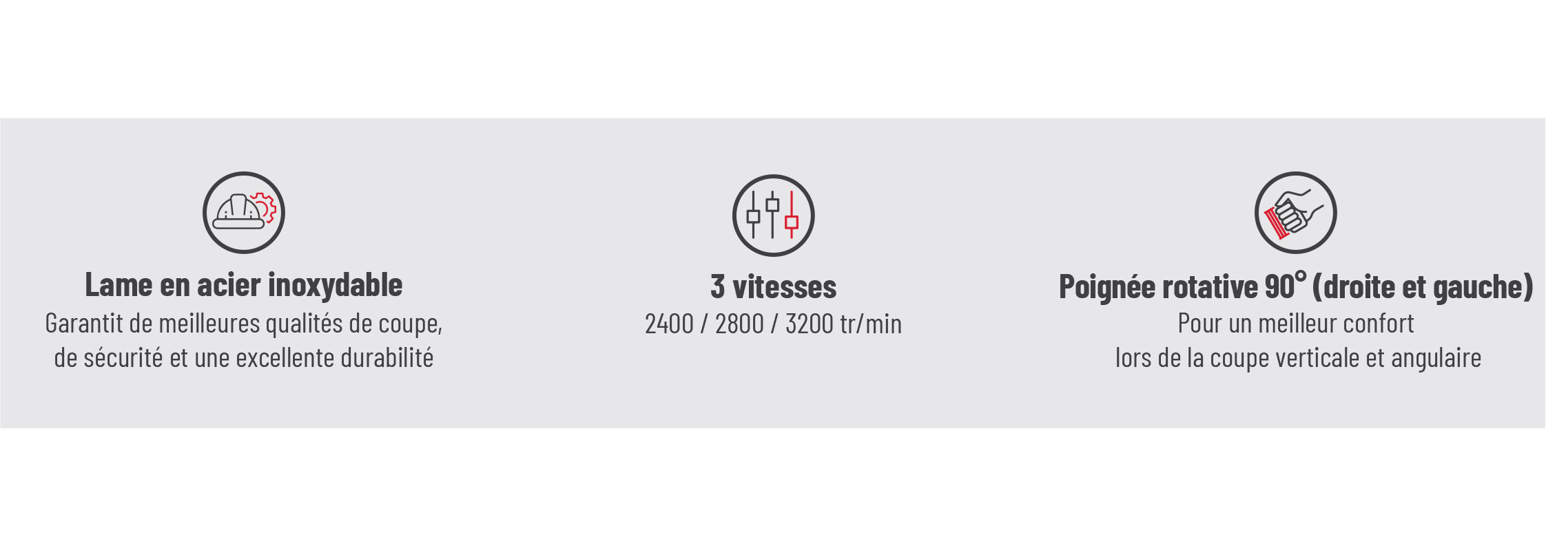 - Travaux de coupe polyvalents nécessitant précision, contrôle et adaptation grâce aux 3 vitesses réglables.