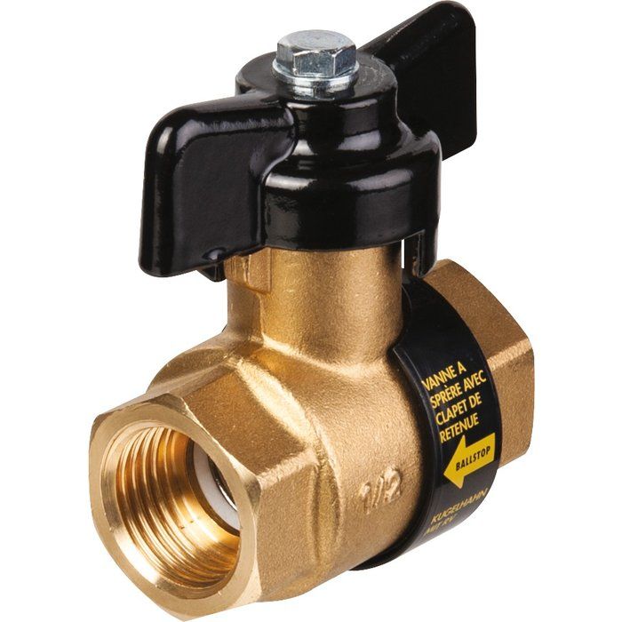 Vanne à boisseau sphérique avec clapet anti-retour - FF 1/2" - Manette papillon noir - Sféraco |